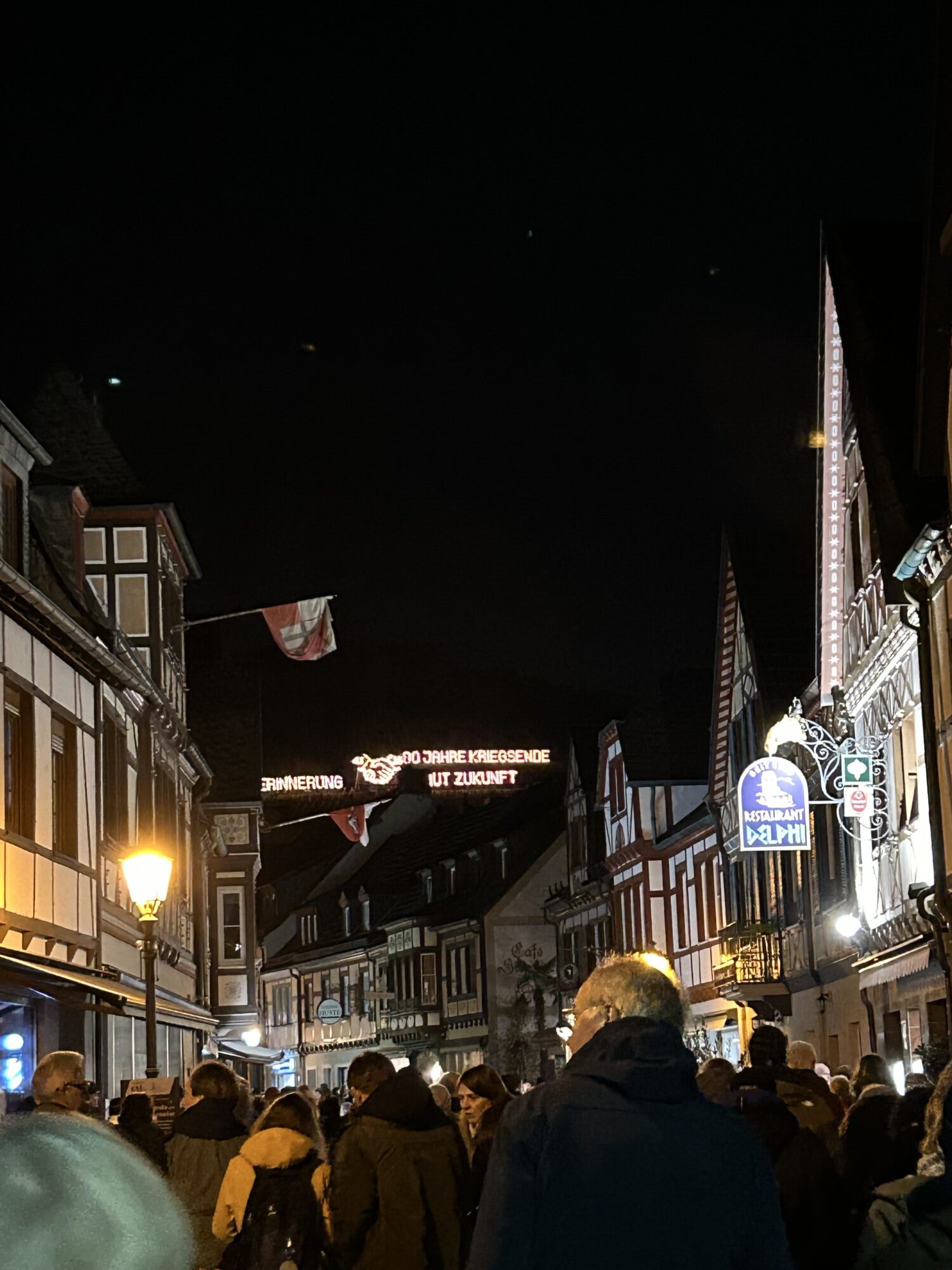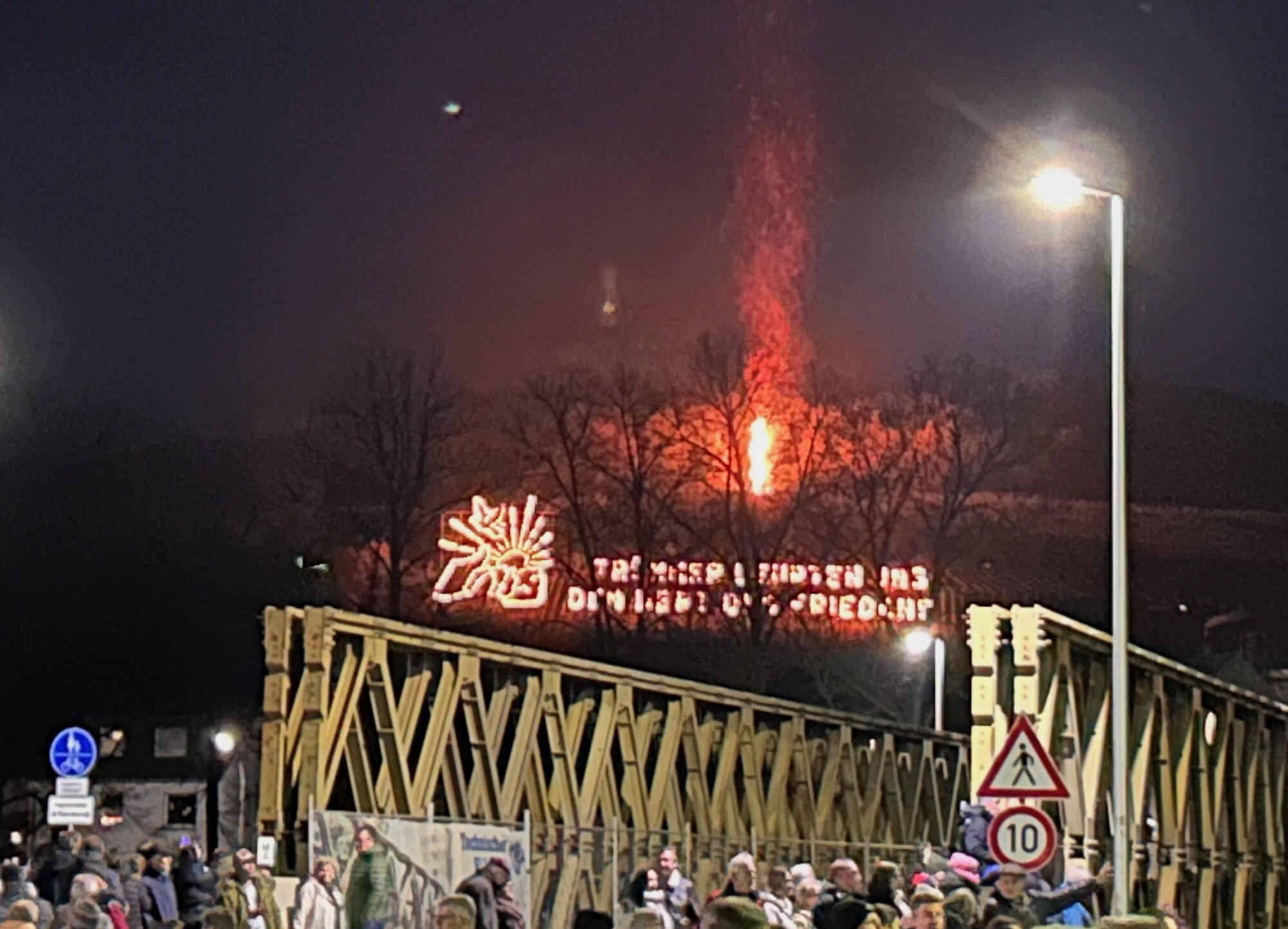 Mit imposanten Bergfeuern und brennenden Schaubildern in den Weinbergen war die Reisegruppe am Abend zu Gast bei einem ganz besonderem Martinsbrauchtum. Und auch hier durfte gestaunt werden. Während die Feuer den sauerländer Osterfeuern ähneln, überbrachten die brennenden Schaubilder Botschaften, wie „80 Jahre Kriegsende, Erinnerung baut Zukunft“ oder auch „Nie wieder ist jetzt. Trümmer lehrten uns den Wert des Friedens“.