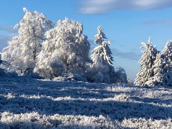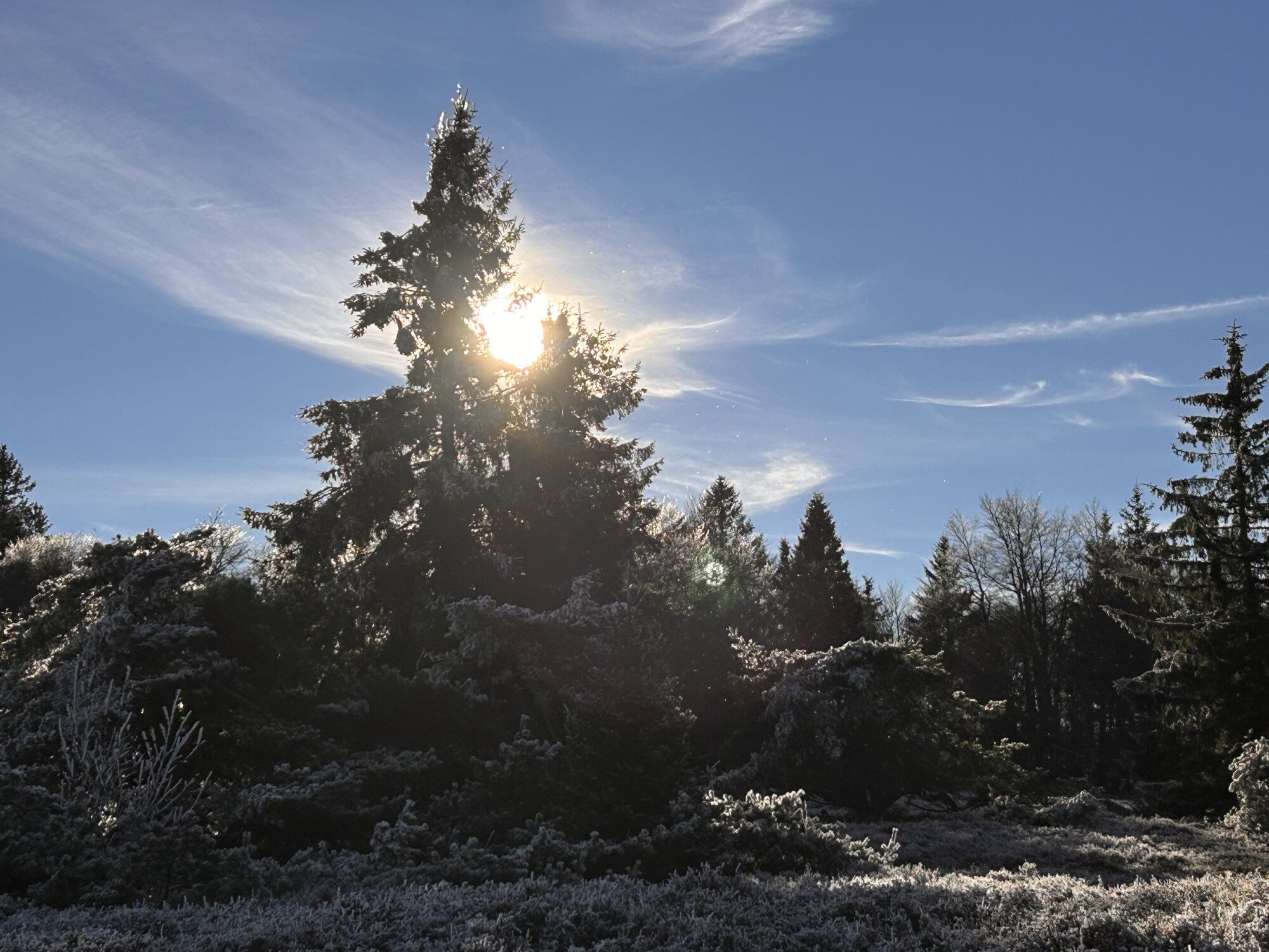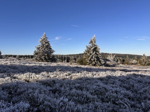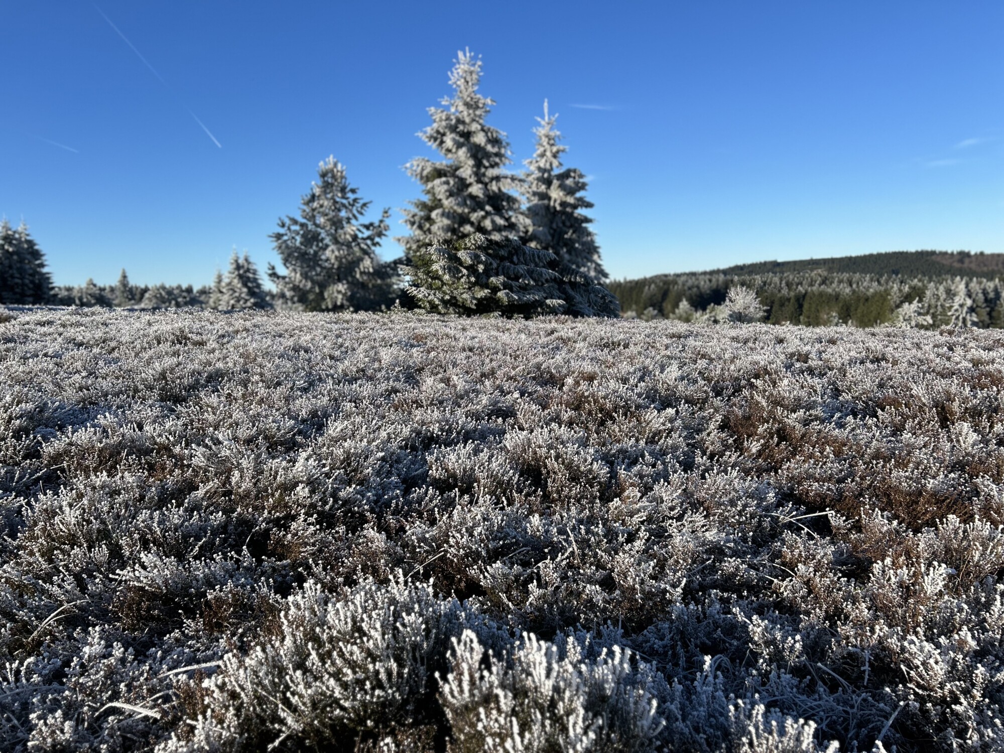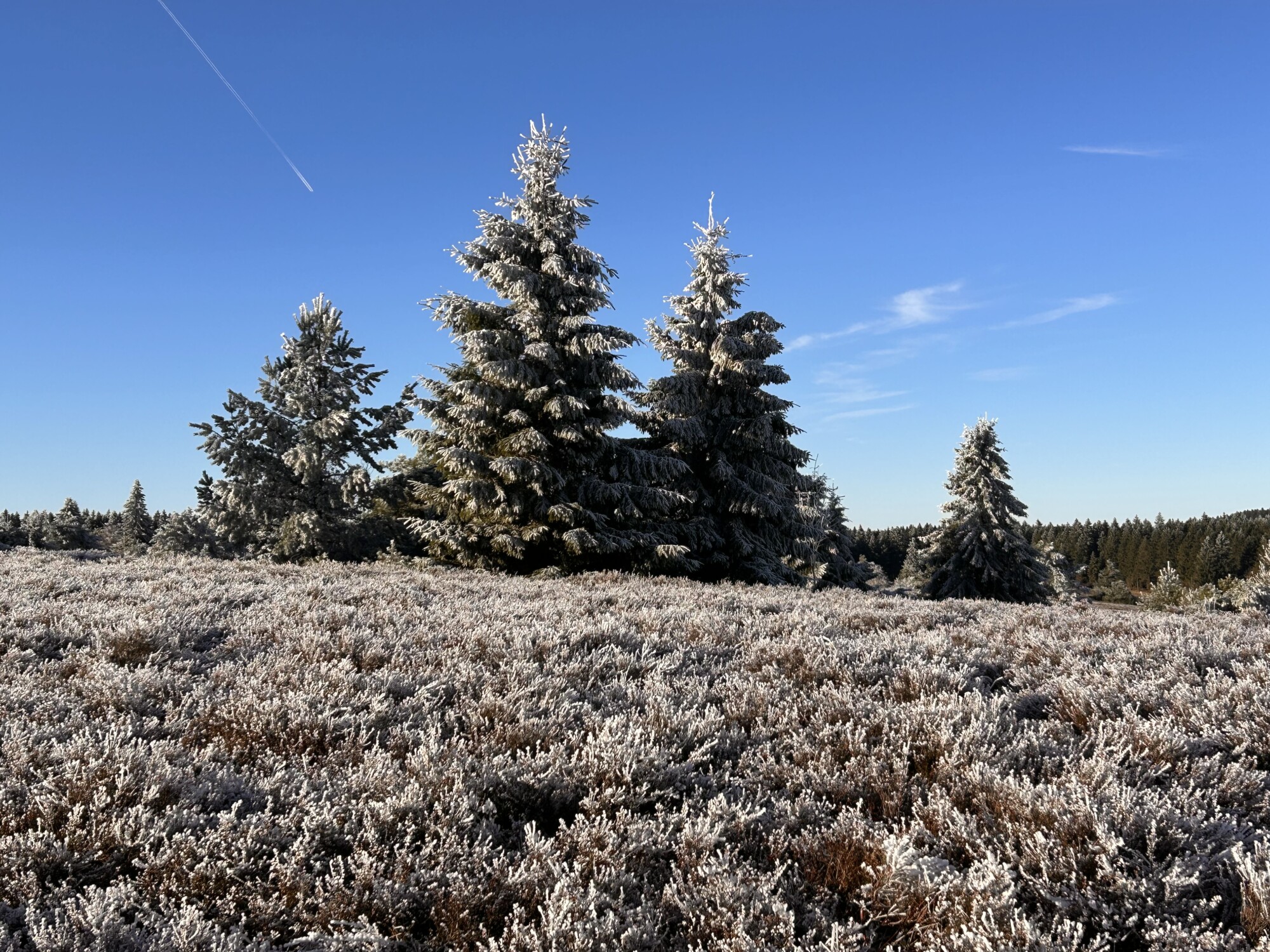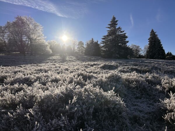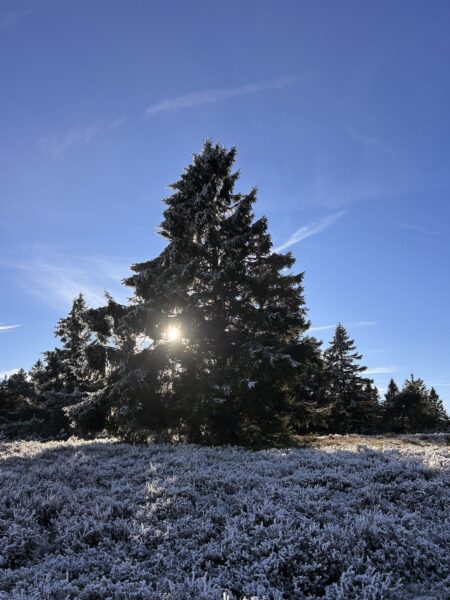 Zum Weihnachtsfest 2025 präsentierte sich die Hochheide in einem schönen, weißen Weihnachtskleid. Väterchen Frost hatte in den Nächten zuvor alles vorbereitet und Mutter Sonne setzte alles ins schönste Licht.