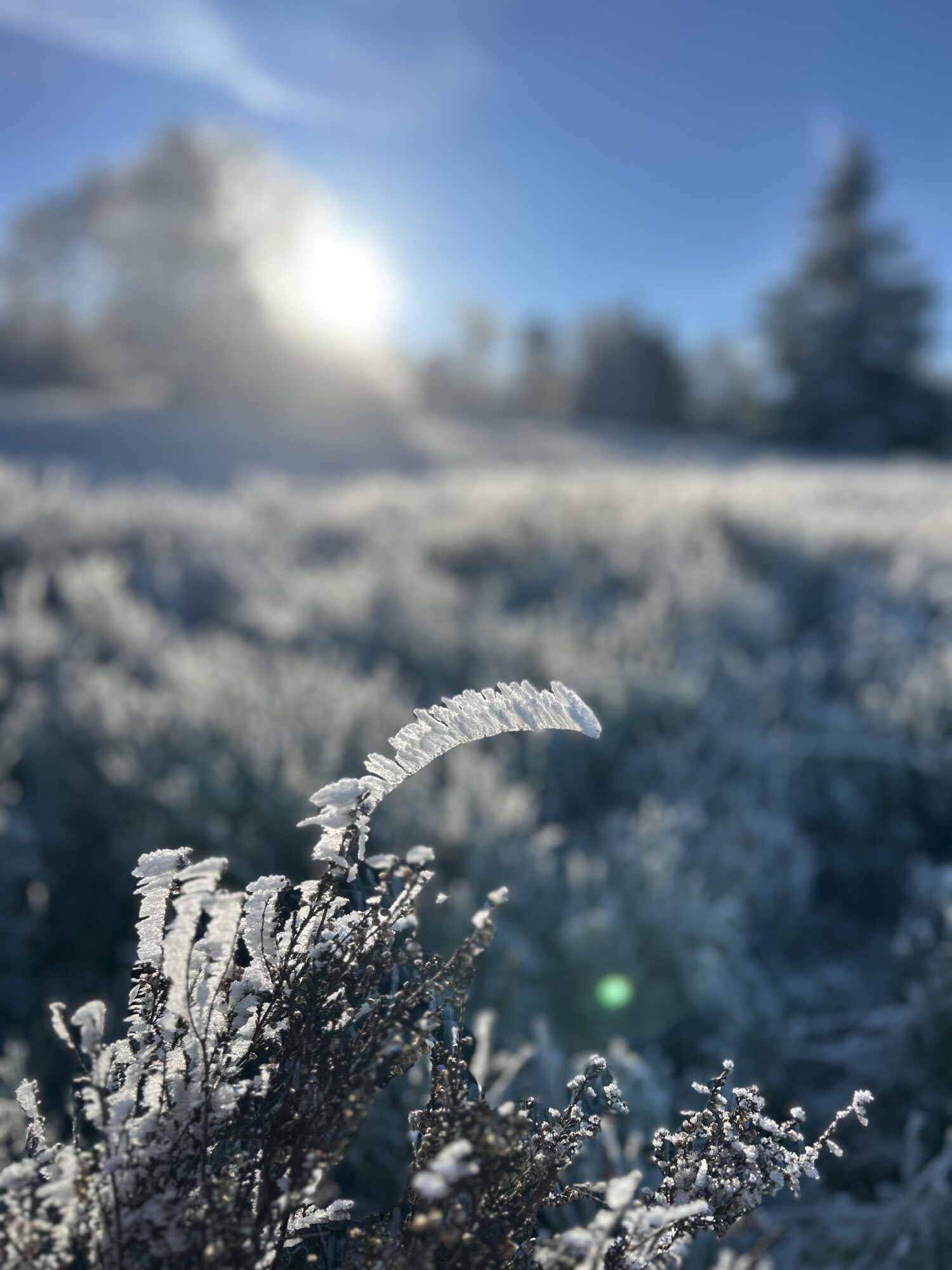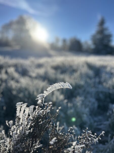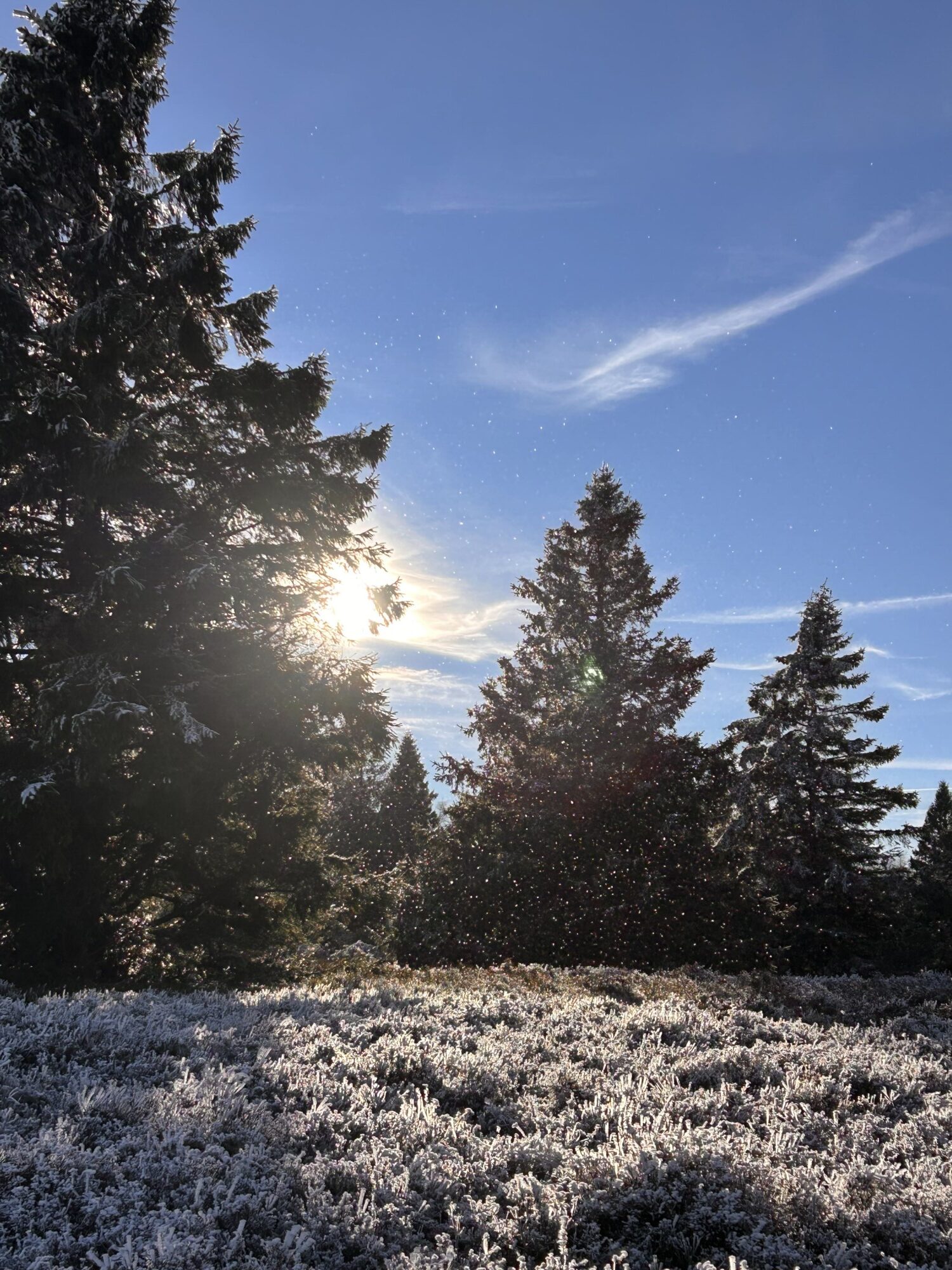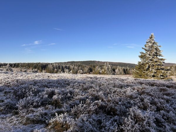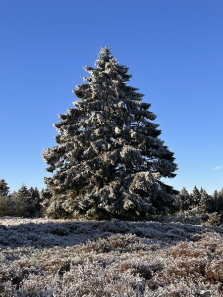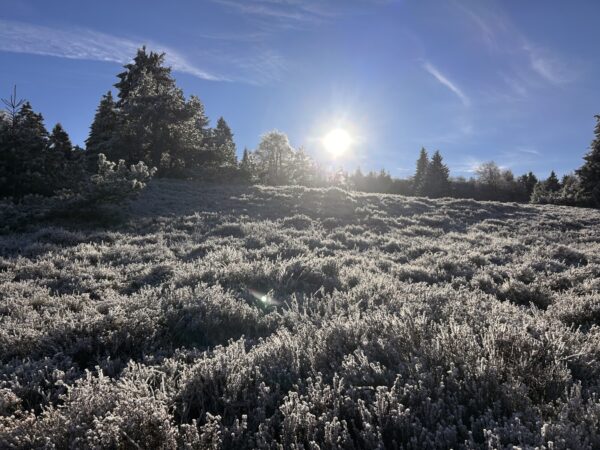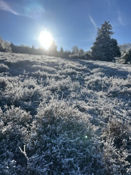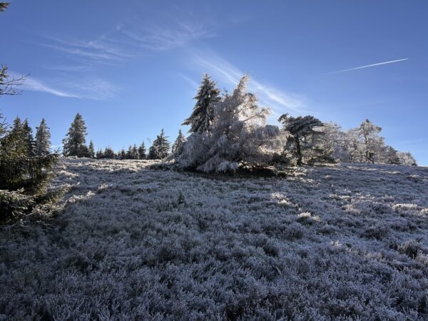 Zum Weihnachtsfest 2025 präsentierte sich die Hochheide in einem schönen, weißen Weihnachtskleid. Väterchen Frost hatte in den Nächten zuvor alles vorbereitet und Mutter Sonne setzte alles ins schönste Licht.