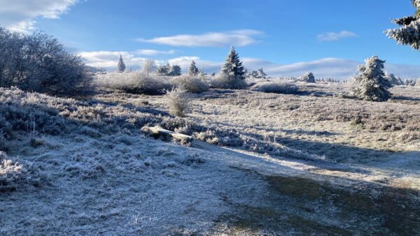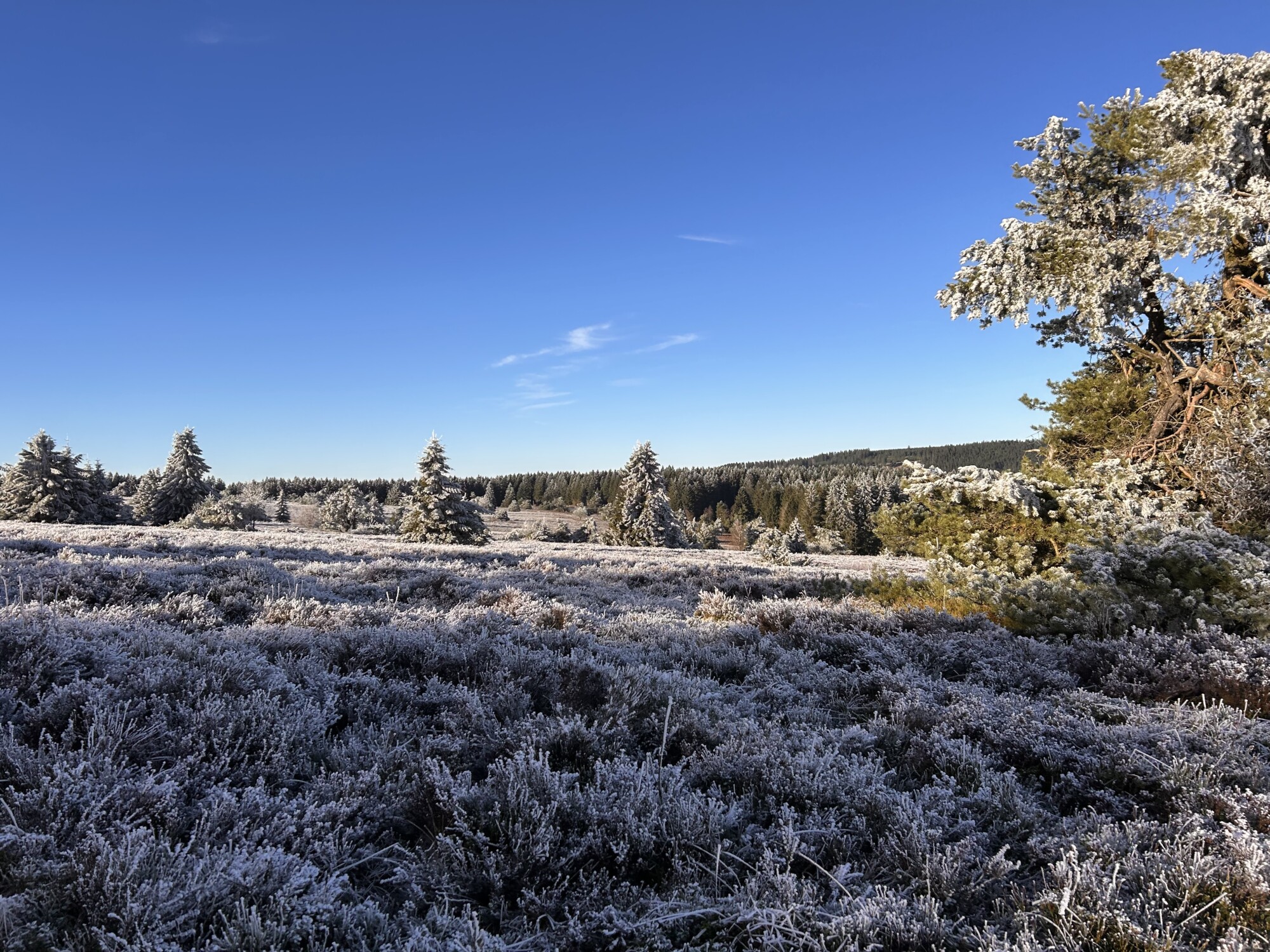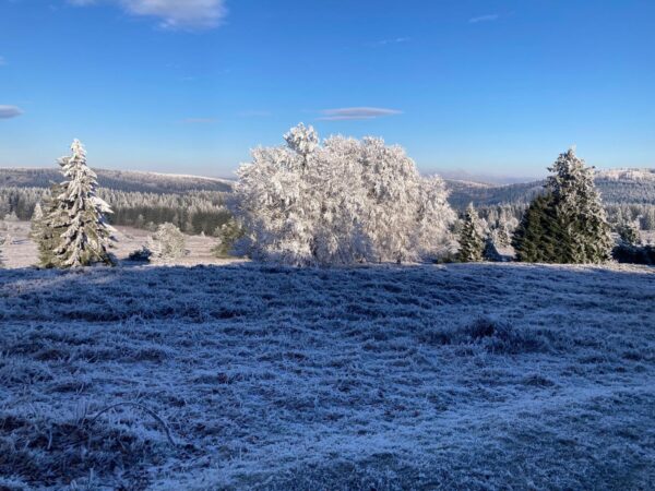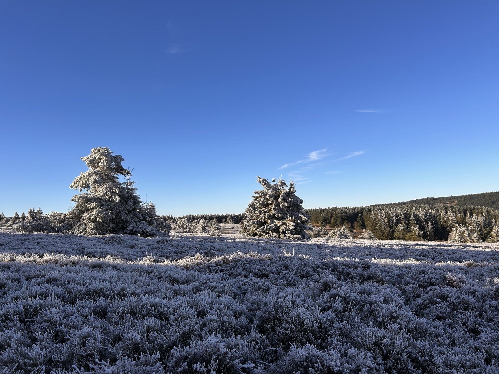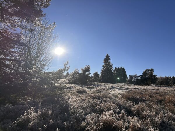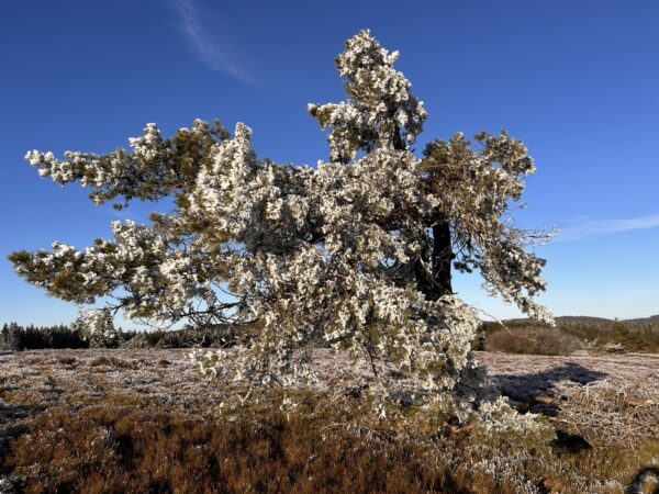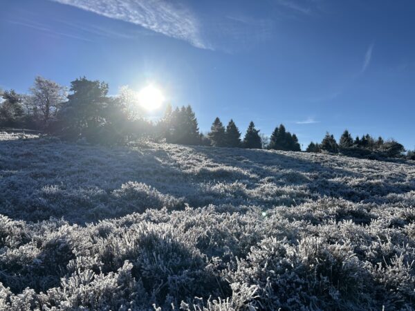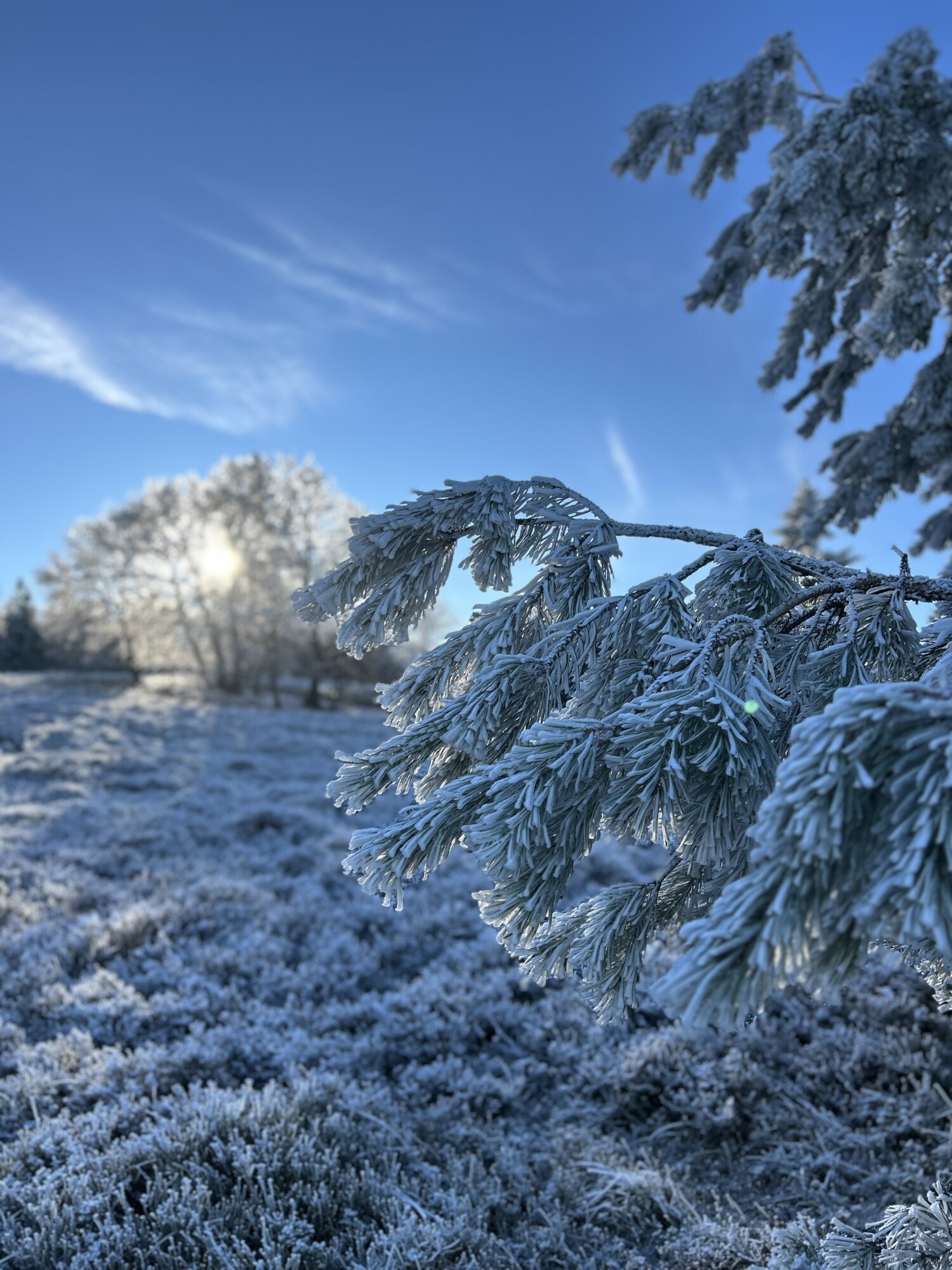Zum Weihnachtsfest 2025 präsentierte sich die Hochheide in einem schönen, weißen Weihnachtskleid. Väterchen Frost hatte in den Nächten zuvor alles vorbereitet und Mutter Sonne setzte alles ins schönste Licht.