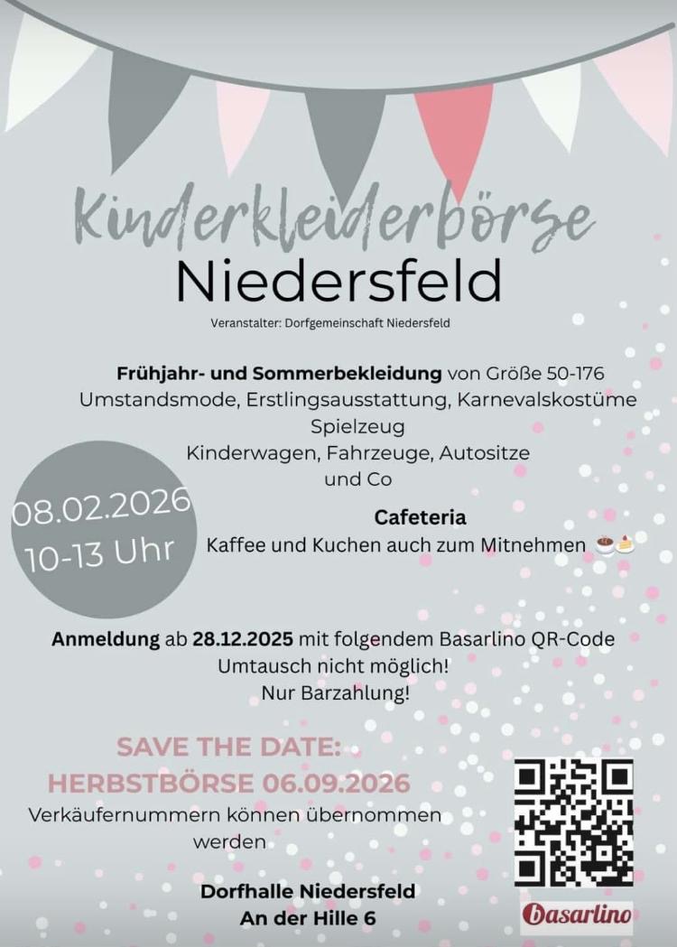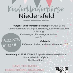 Die Kinderkleiderbörse Niedersfeld ist startklar! Morgen früh ab 10:00 Uhr geht’s in der Schützenhalle Niedersfeld los! Neben Kinderbekleidung gibt es auch Spielsachen, Karnevalskostüme, Kinderwagen, Autositze und vieles mehr rund um Kind und Kegel.
