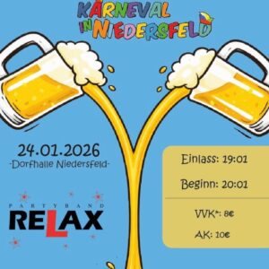„Einfach Laufen lassen!“ So lautete das Motto des Abends beim großen Karneval in der Dorfhalle Niedersfeld. Das Programm war gespickt mit ordentlich gesalzenen Inhalten, spektakulären Einlagen und Dialogen, bei denen man die Ohren spitzte. Einige Programmpunkte drückten ordentlich auf die Tränendrüse und das bunt gemischte Publikum gab für das zweistündige Programm viel und berechtigten Applaus.