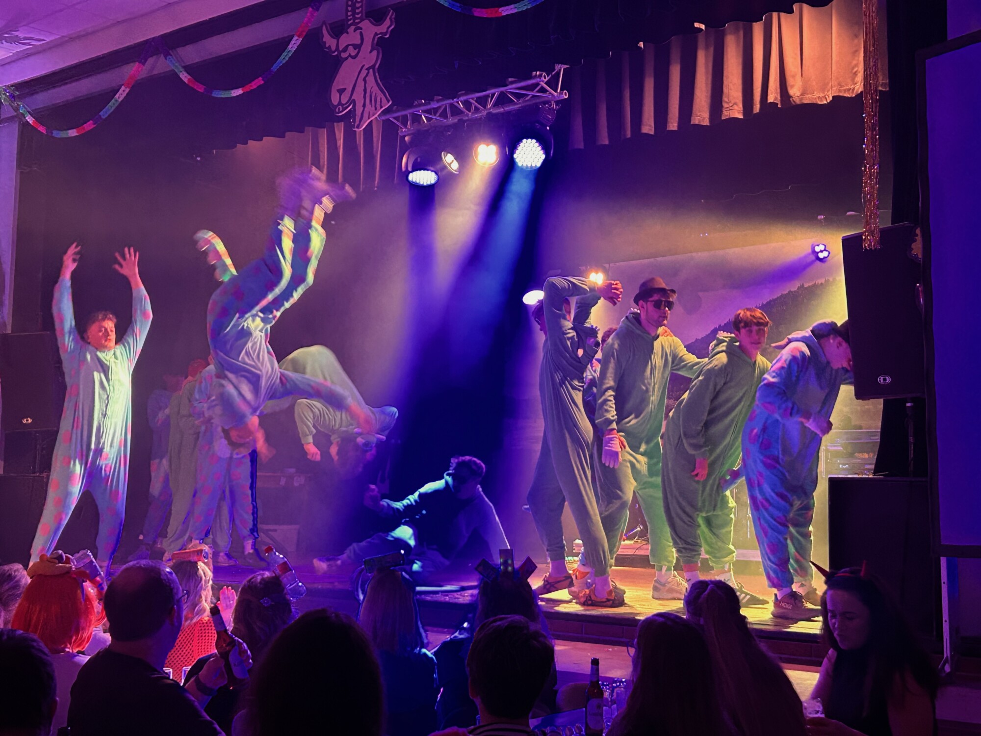 Die Jugend Niedersfeld hatte sich wochenlang auf das Programm vorbereitet. Natürlich geht es dabei auch einmal deftig zu und so war mancher Beitrag mit ordentlich Salz im Wort gespickt. Der Tanz der jungen Damen und der Tanz der jungen Herren erregte besondere Aufmerksamkeit und bewies nicht nur Taktgefühl, sondern zeigte auch den Ehrgeiz, mit dem diese beiden Tänze einstudiert wurden. Kurzfilmbeiträge brachten ihrerseits nicht nur Einblicke hinter die Kulissen, sondern trugen ihrerseits zu kräftigen Lachattacken bei.