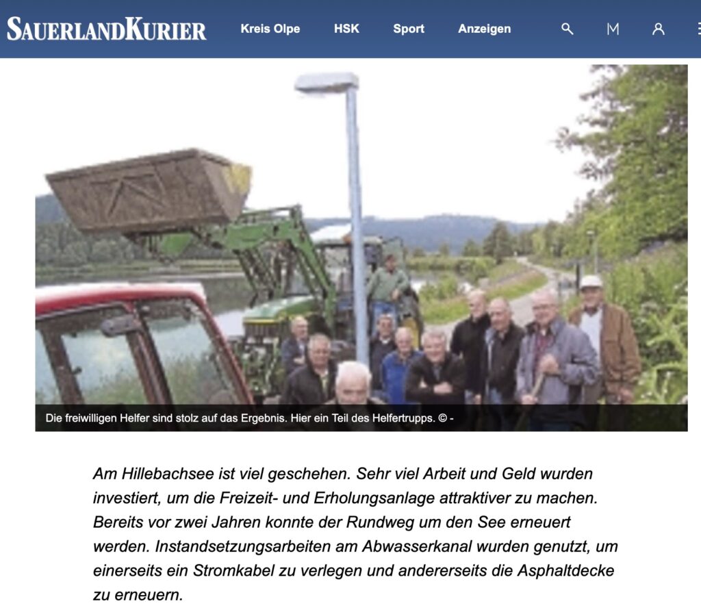 Die Dorfgemeinschaft konnte bei den Arbeiten auf fleißige Helfer zählen. Ob mit Hacke und Schüppe, mit Bagger oder Trecker, Jung und Alt packten an, um die Infrastruktur am Hillebachsee wesentlich zu verbessern. Die Kosten, die nicht durch Spenden gedeckt werden konnten, hat die Dorfgemeinschaft zu tragen. Die Dorfgemeinschaft heißt weitere Spenden willkommen, damit die Kostenlast nicht all zu schwer wird. Allen Helfern und den großzügigen Spendern wird gedankt.
